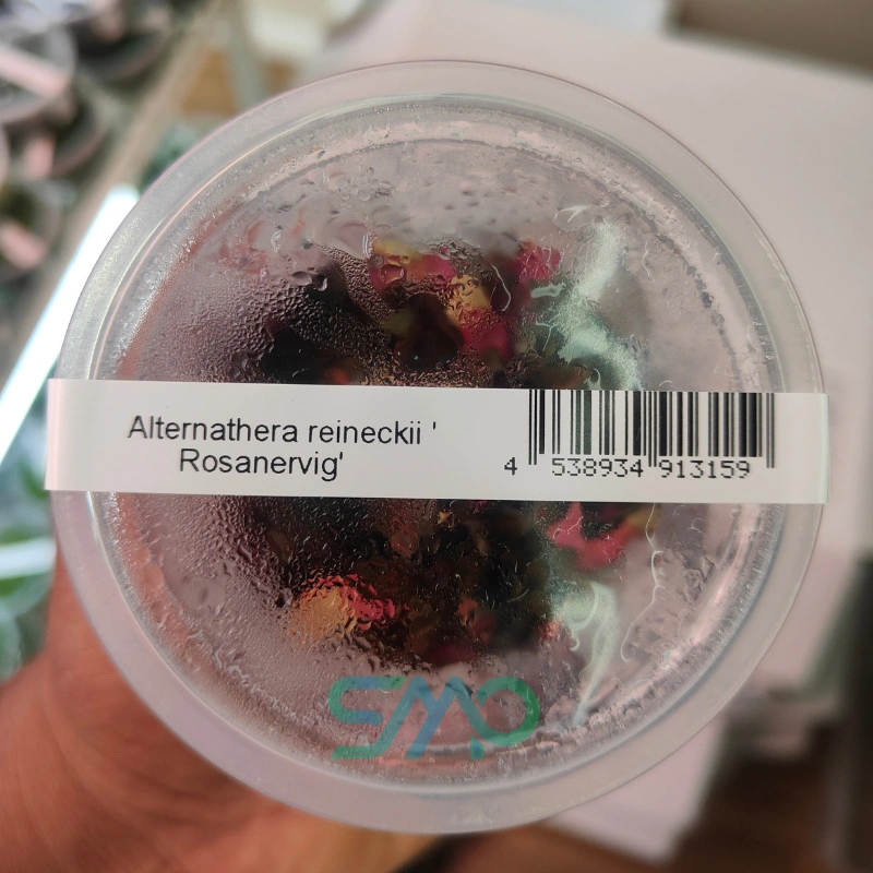 Alternanthera reineckii ‘Rosanervig’ is a highly decorative aquarium stem plant, well known for its eye-catching pink to reddish leaves marked with unique pale veins. This variety stands out beautifully against green plants, making it a favorite centerpiece in aquascaping layouts.